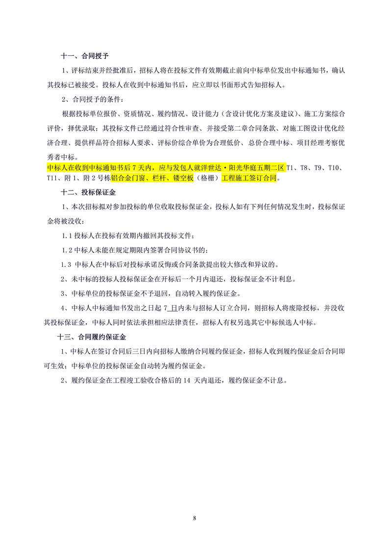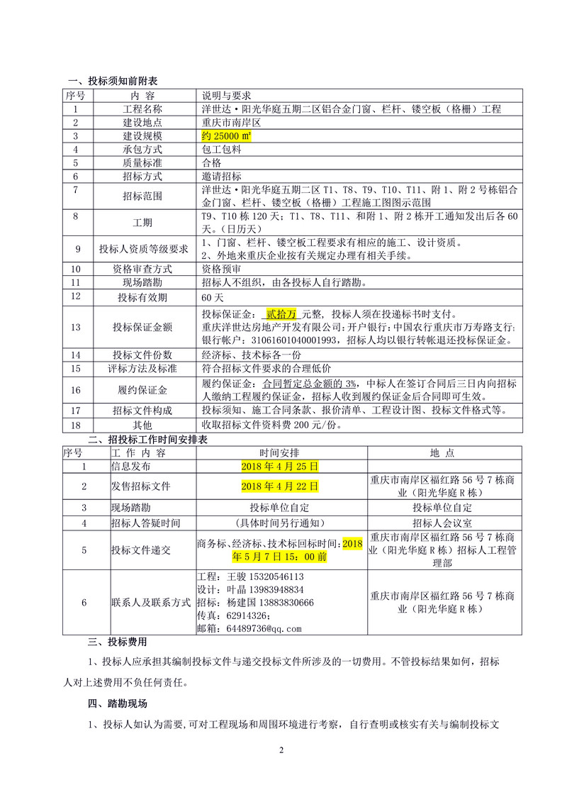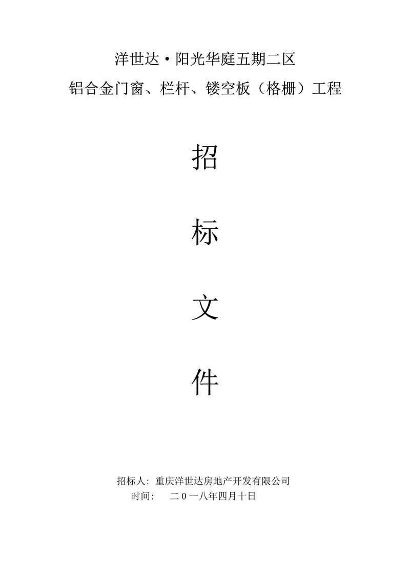 洋世達?陽光華庭五期二區(qū)鋁合金門窗、欄桿、鏤空板(格柵)工程招標(biāo)文件