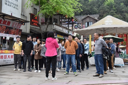南山·壹華里小鎮是重慶非遺美食和傳統手工藝制作的匯聚地。員工們先在小鎮上開展了別開生面的趣味探寶和即興搶答活動。大家隨機分成4個小組,團隊成員的相互配合、機智應變在活動比拼中展現得淋漓盡致。