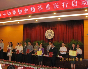 2012年6月3日上午,由共青團(tuán)重慶市委、重慶市青年聯(lián)合會(huì)、重慶市青年企業(yè)家協(xié)會(huì)、重慶市青年商會(huì)、重慶市青年創(chuàng)新創(chuàng)業(yè)基金會(huì)主辦的“中國(guó)青年創(chuàng)新創(chuàng)業(yè)精英重慶行”啟動(dòng)儀式暨青年創(chuàng)新創(chuàng)業(yè)導(dǎo)師團(tuán)首場(chǎng)報(bào)告會(huì)在重慶大學(xué)民主湖學(xué)術(shù)報(bào)告廳舉行。重慶市人大常委會(huì)黨組副書記、副主任余遠(yuǎn)牧,中國(guó)工程院院士、中國(guó)科協(xié)副主席、全國(guó)青聯(lián)副主席、中星微電子有限公司董事長(zhǎng)鄧中翰,重慶市委副秘書長(zhǎng)羅慶宏等相關(guān)領(lǐng)導(dǎo)出席了啟動(dòng)儀式,本次啟動(dòng)儀式由共青團(tuán)重慶市委書記、黨組書記周波主持。