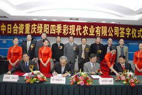 本次簽約儀式由南岸區人民政府副區長唐昕主持,共青團中央國際項目合作中心、重慶市農業綜合開發辦公室、市農工委、市農業局、共青團重慶市委等單位的相關領導,以及中共南岸區委、區人大、區政府、區政協主要領導及相關部門領導,洋世達集團公司全體領導參加儀式,共同見證了一個由中日合資組建的現代化農業企業的誕生。